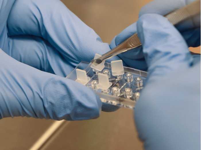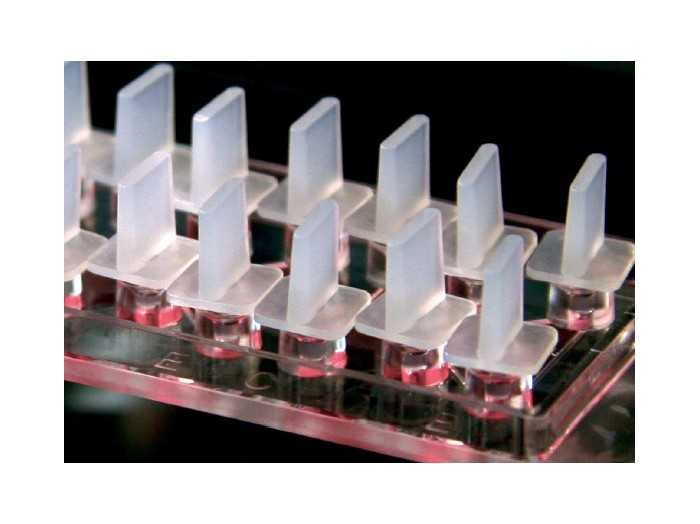 搭配微量分注器使用于兩側(cè)60 μL儲液槽中制造出化學(xué)物質(zhì)的線性濃度梯度,此時嵌入在儲液槽中間觀察管道基質(zhì)膠中的細胞即處于一穩(wěn)定的線性濃度梯度培養(yǎng)環(huán)境中。