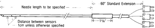 e.g. MT-23/5(2) is a 23ga needle, 5 cm needle, 5cm long with 2sensors. Unlessotherwisespecified sensorswill be lcm apart, starting at tip.